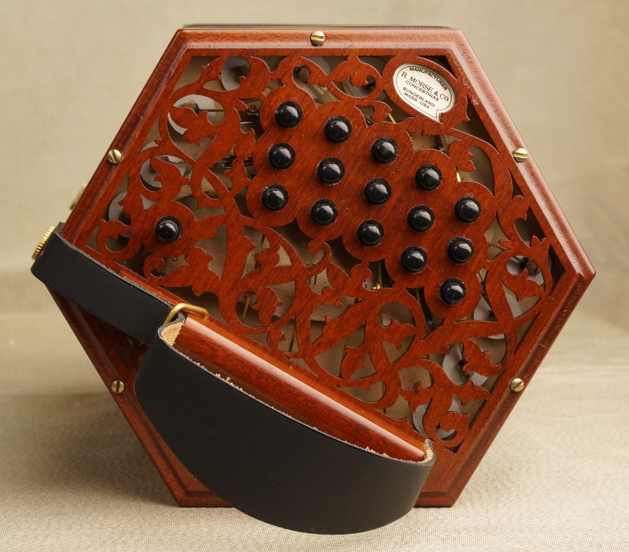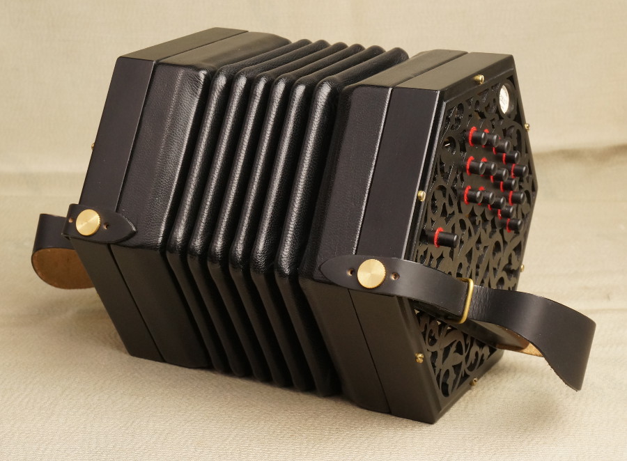 | Fittings: | Our concertinas are fitted with our own brass endbolts and thumbscrews. |