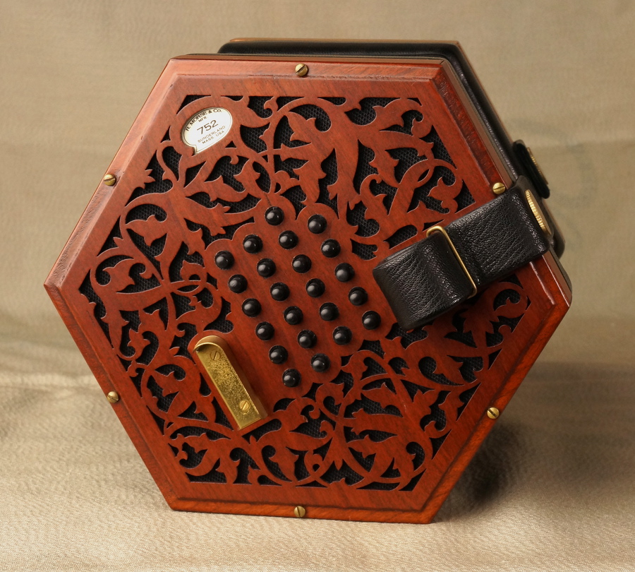 | Fittings: | Our concertinas are fitted with our own brass endbolts and thumbscrews. |