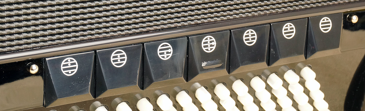 Brandoni 144CA top-of-the-line model from one of Italy's premier makers. 96 bass, 34 treble (g - e3), 4/5 sets of handmade reeds (Artigiana, LMMH). Double tone chamber, 11/7 switches. Cassotto-style bass reedblocks. Pearl keys & bass buttons. 16" keyboard; overall measurement 17½" x 7½". 23 lbs. With backpad, deluxe straps, and rolling hardshell case. Video 1, Video 2. |