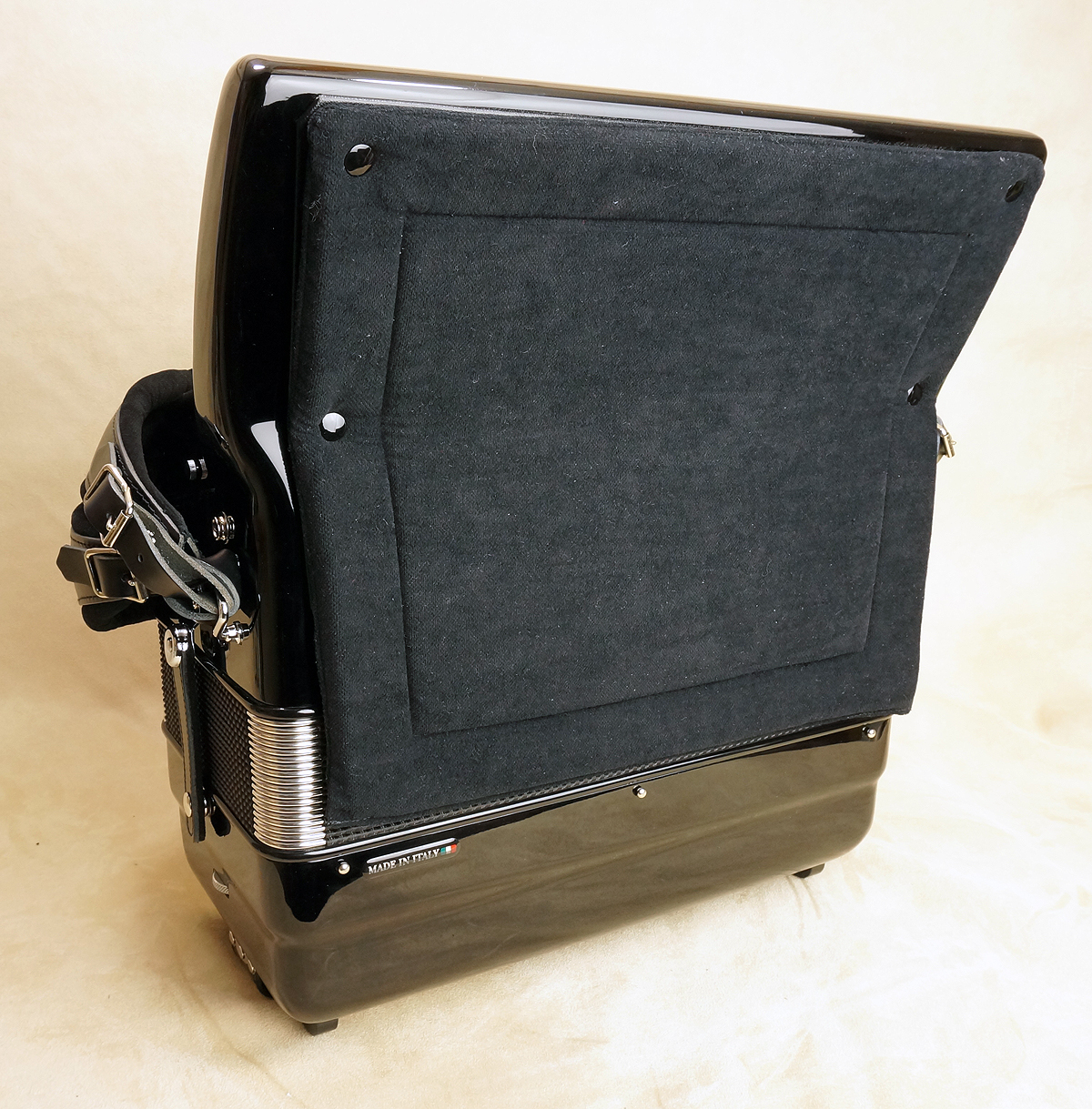 Brandoni 65W30 treble keys (g-c3), 72 bass buttons. 3/4 sets of Artigiana Professional handmade reeds (LMM). 5 treble registers and 3 bass/chord registers. Solid mahogany construction with natural finish. 16 lbs. With backpad, deluxe straps, and rolling hardshell case. |